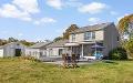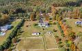 1624 Perth Road. This home shows like a staged model with wide plank luxury vinyl flooring throughout the first floor. The open layout includes a sunken family room featuring a wood stove with a dramatic floor-to-ceiling stone surround. Bright and spacious, the home offers large windows overlooking the back property, barns, and paddocks—perfect for keeping an eye on a horse or two. The versatile property lends itself to many endeavors. Enjoy the multi-level back deck, stamped concrete patio, and fire pit. A screened-in deck with two paddle fans makes outdoor living comfortable day and night. The first floor also includes a laundry room and half bath, which could easily be converted to a full bath. The showcase kitchen offers an island, granite counters, abundant cabinet space, black stainless Samsung appliances, under-cabinet lighting, and a subway tile backsplash. An attached two-car garage is complemented by a detached garage currently used as a workshop and workout space. Additional outbuildings include a barn that could serve as a chicken coop or wood storage, plus two barns and paddocks suitable for horses.